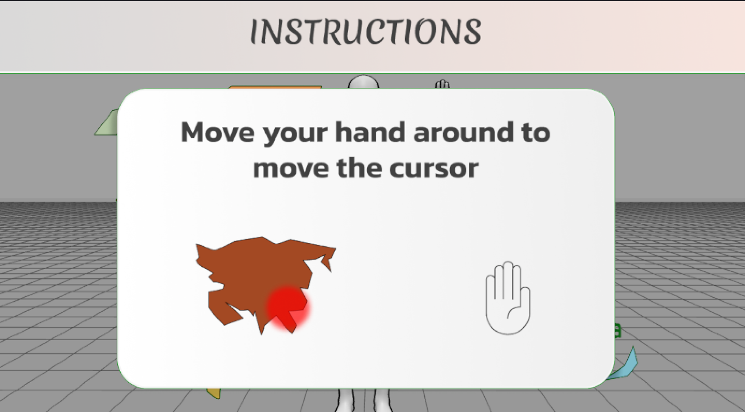 Users can make selections within the menus by moving the cursor where they want to select and keeping their hand still for two seconds, where an animation will play, making the selection.