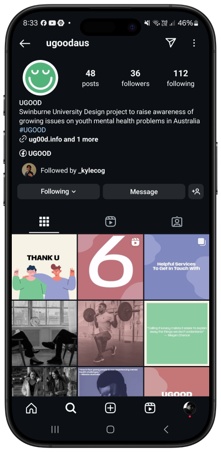 "UGOOD" is a digital marketing campaign to raise awareness of rising mental health issues among young people in Australia. It seeks to inform the public about current mental health research and improve interactions with youth facing mental health challenges. The campaign features a well-designed website and social media posts that provide weekly updates, blog articles on new research, statistics, and support resources for mental health.
